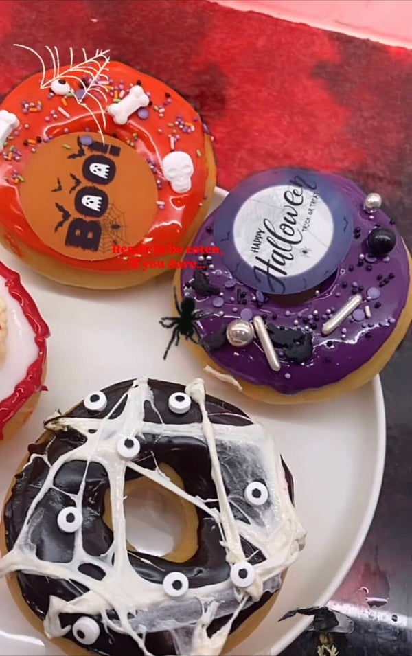 Smul samen met vrienden of familie tijdens een halloweenontbijt of griezelavond van onze heerlijk angstaanjagende donuts.